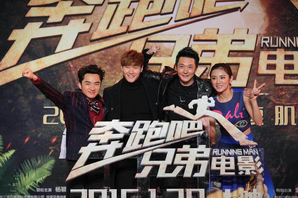大電影“奔跑吧,兄弟”宣傳活動(dòng)現(xiàn)場(chǎng),金鐘國(guó)和王祖藍(lán)。(北京一路領(lǐng)先汽車(chē)租賃公司)圖
